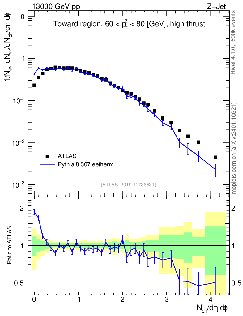 Lines: data, pythia8 8.307 eetherm |