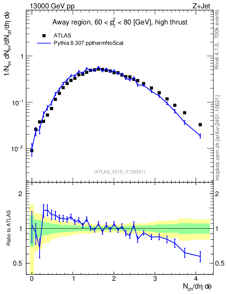 Lines: data, pythia8 8.307 ppthermNoScat |