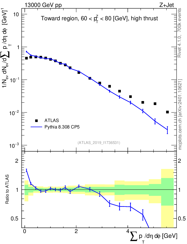 Lines: data, pythia8 8.308 CP5 |