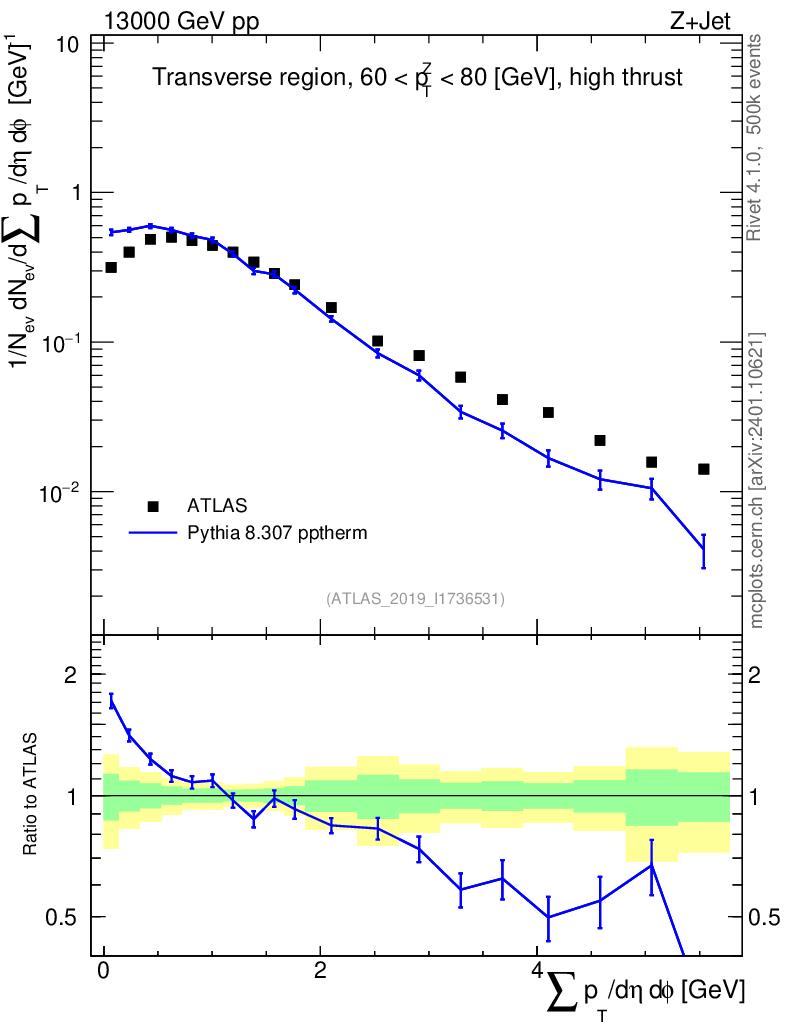 Lines: data, pythia8 8.307 pptherm |