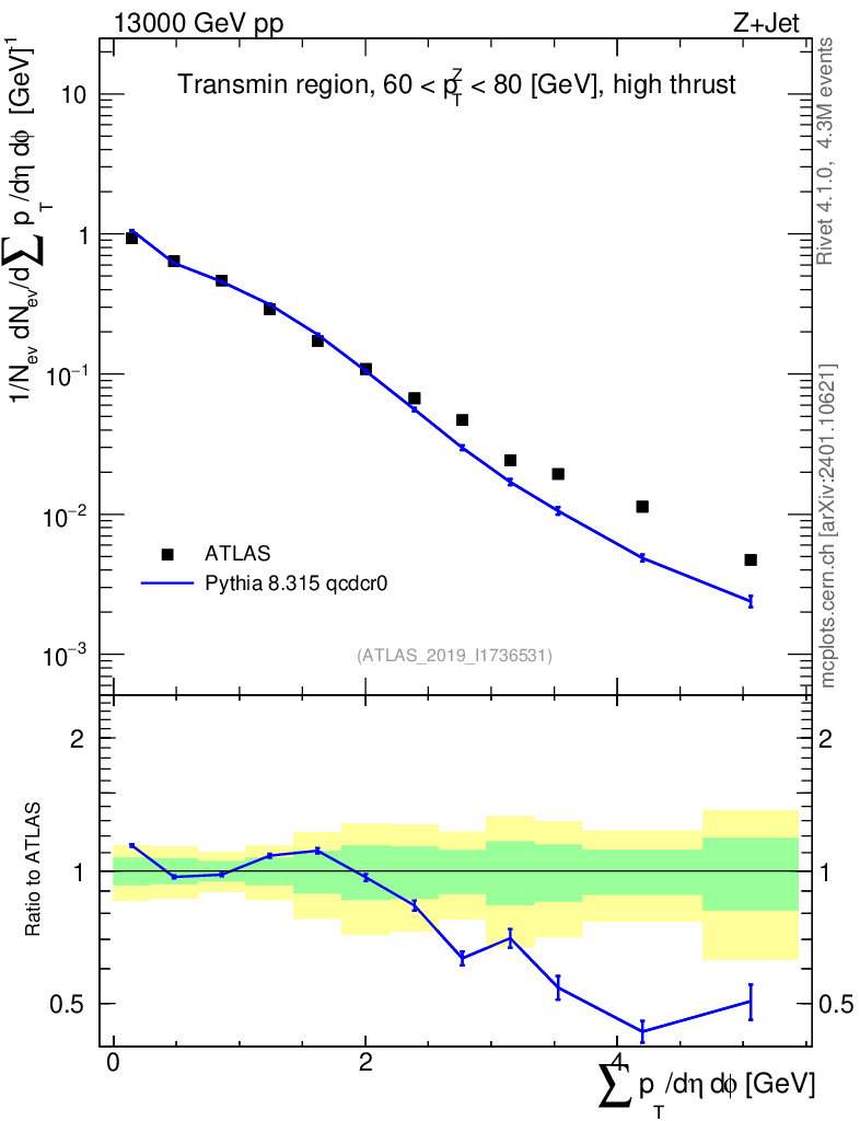 Lines: data, pythia8 8.315 qcdcr0 |