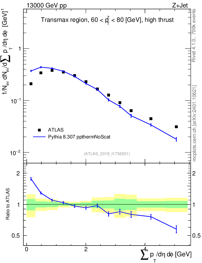 Lines: data, pythia8 8.307 ppthermNoScat |
