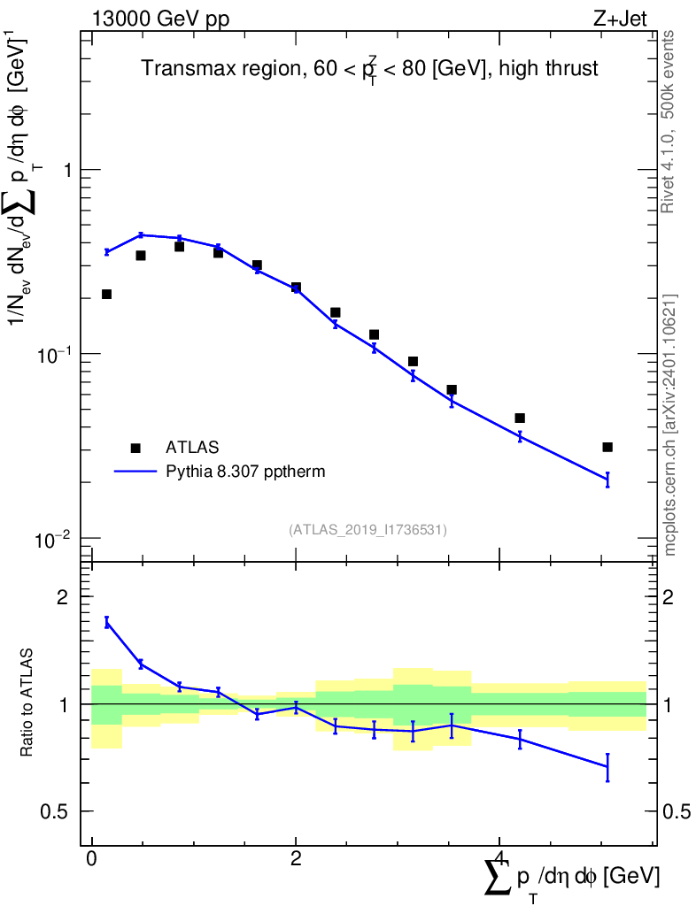 Lines: data, pythia8 8.307 pptherm |