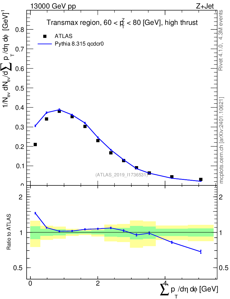 Lines: data, pythia8 8.315 qcdcr0 |