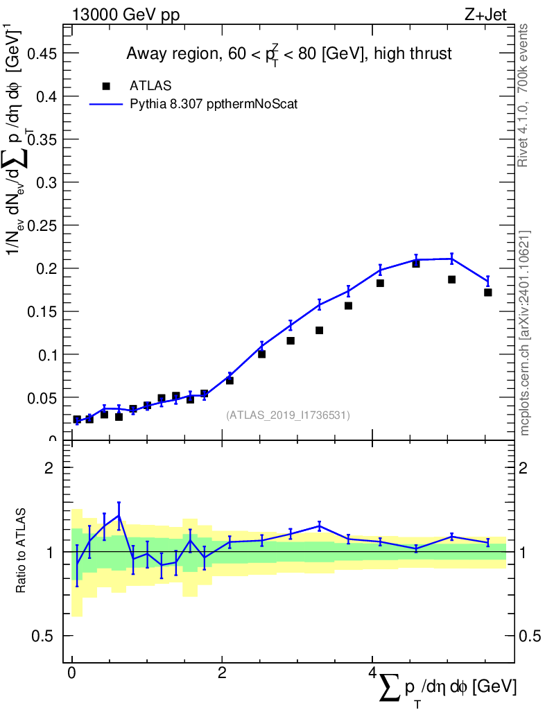 Lines: data, pythia8 8.307 ppthermNoScat |