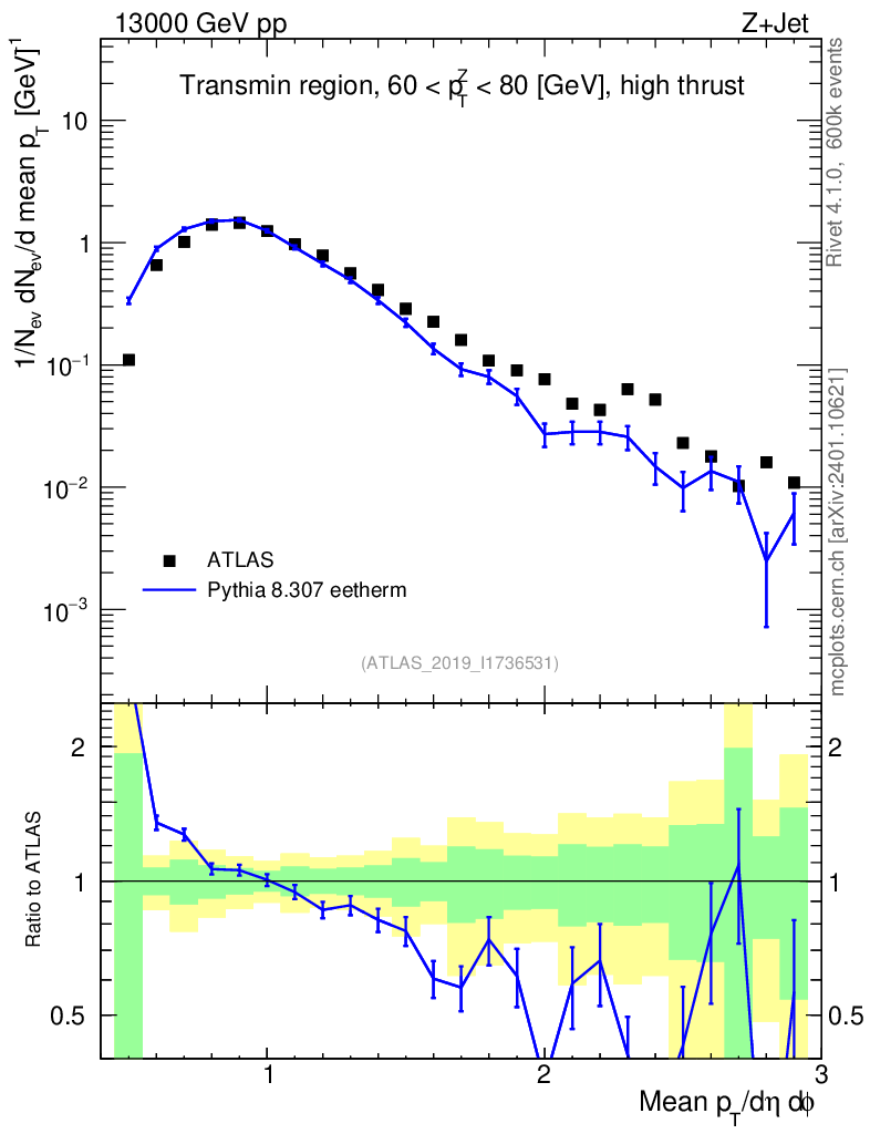 Lines: data, pythia8 8.307 eetherm |