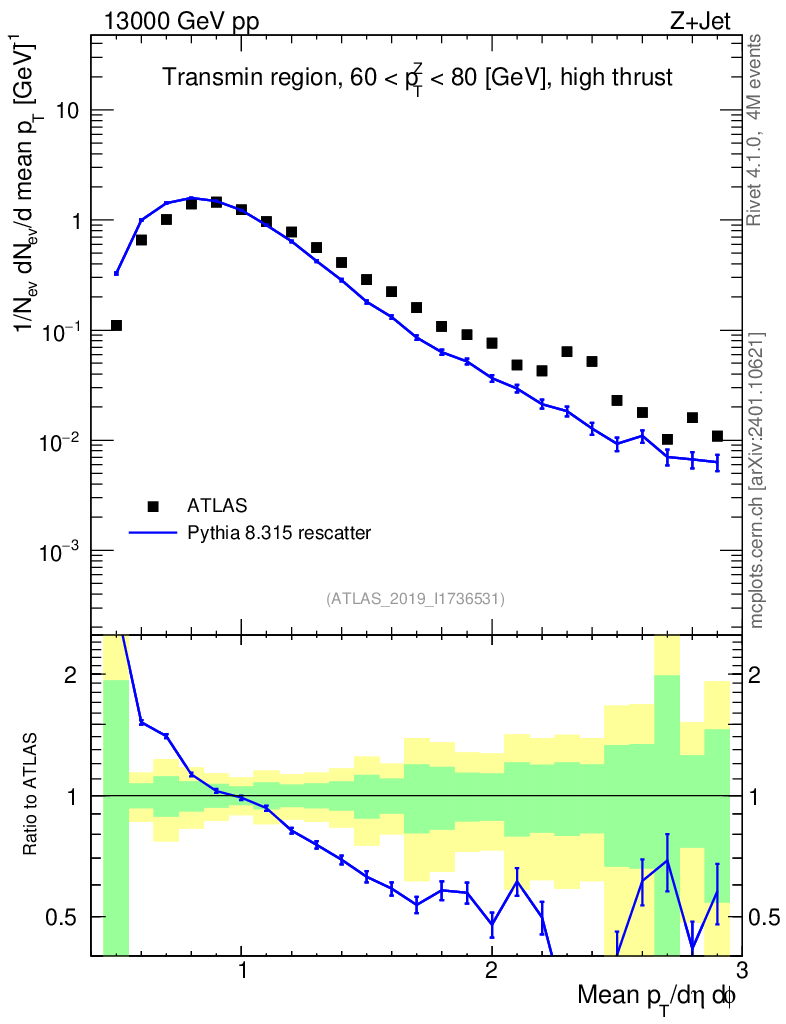 Lines: data, pythia8 8.315 rescatter |