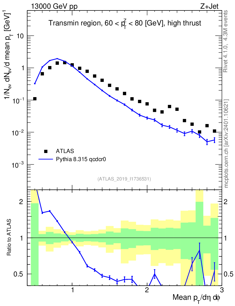Lines: data, pythia8 8.315 qcdcr0 |