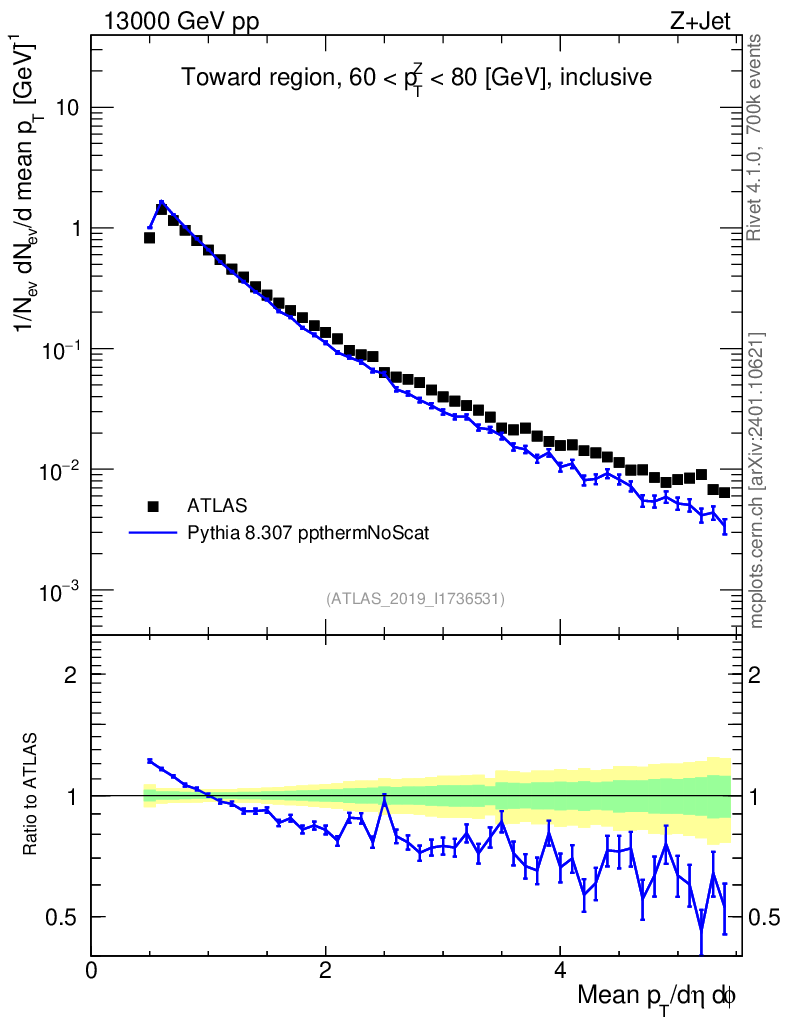 Lines: data, pythia8 8.307 ppthermNoScat |