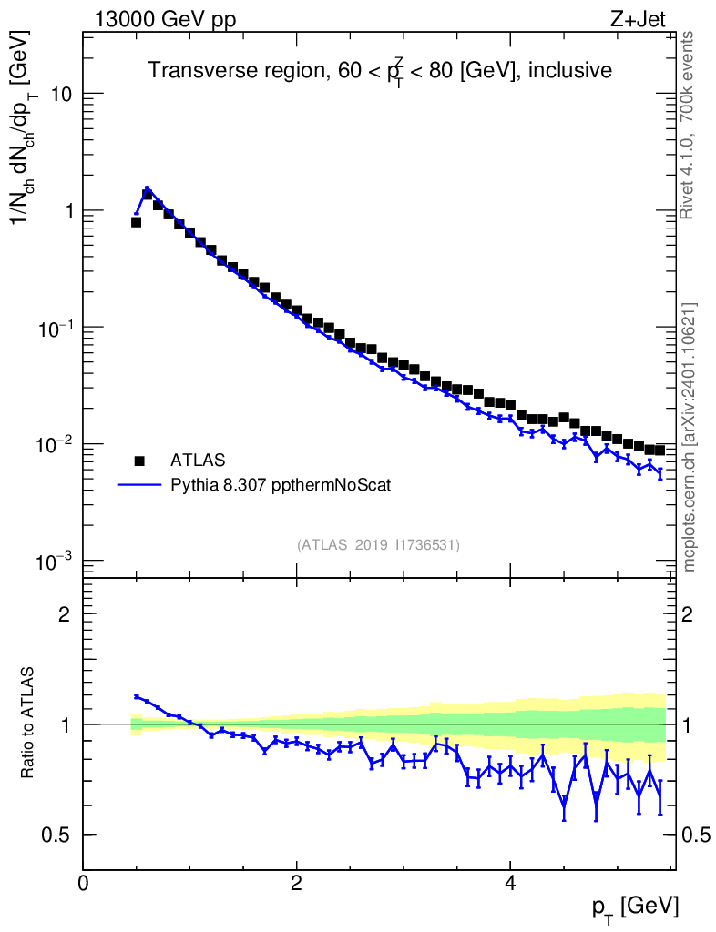 Lines: data, pythia8 8.307 ppthermNoScat |