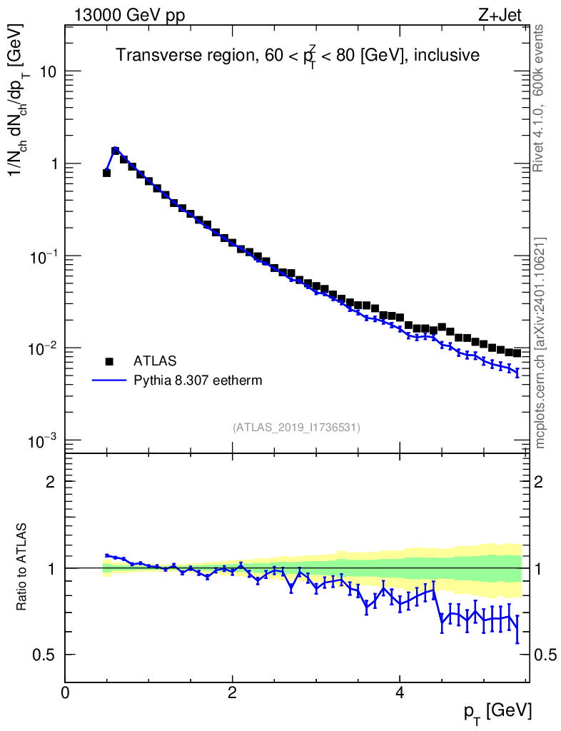 Lines: data, pythia8 8.307 eetherm |