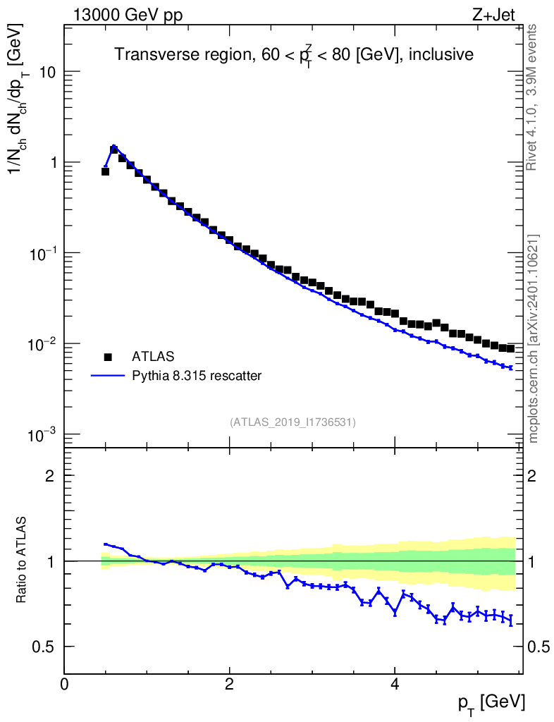 Lines: data, pythia8 8.315 rescatter |