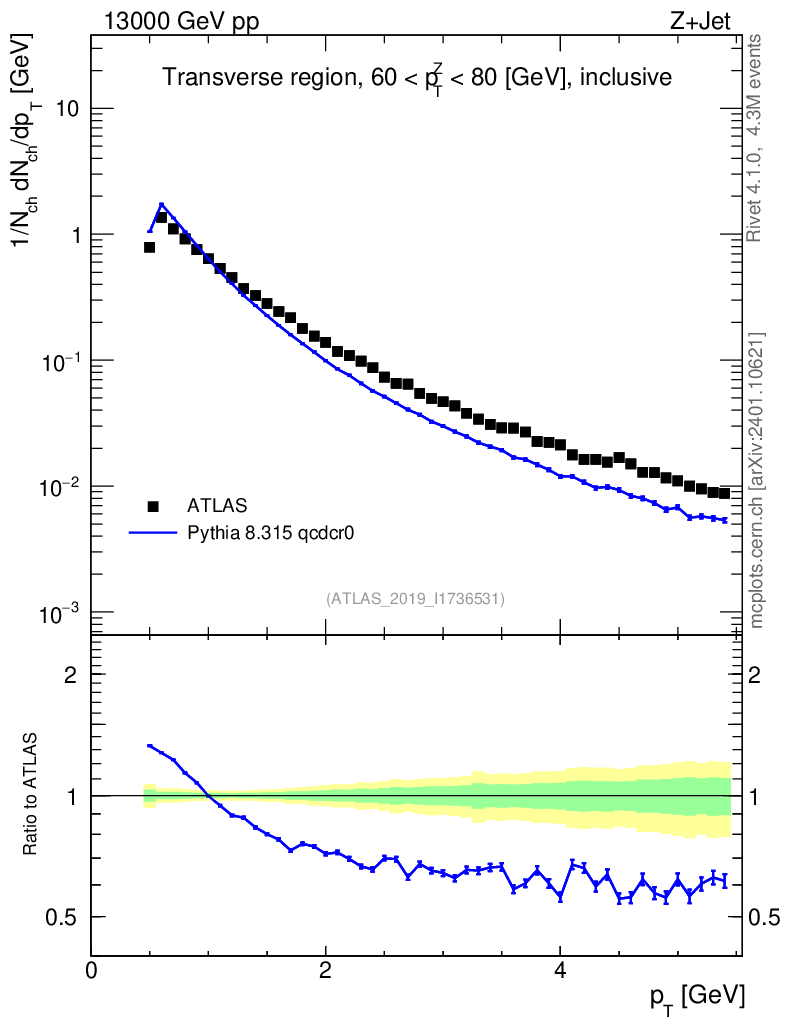 Lines: data, pythia8 8.315 qcdcr0 |