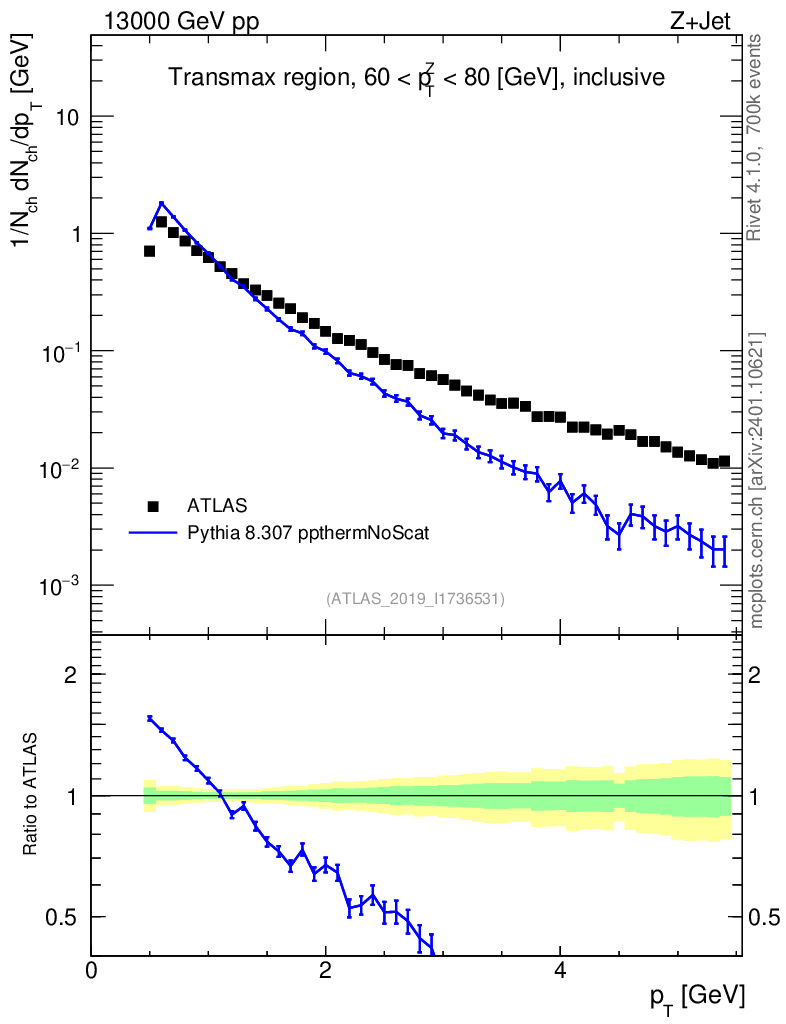 Lines: data, pythia8 8.307 ppthermNoScat |