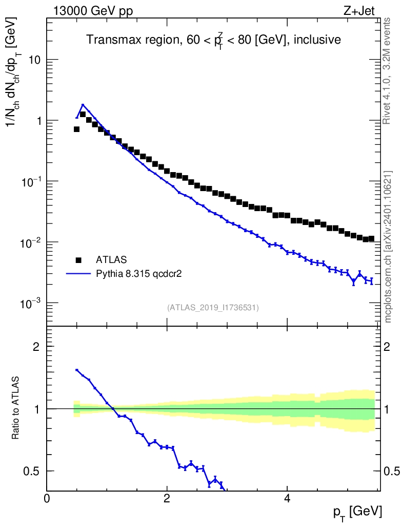 Lines: data, pythia8 8.315 qcdcr2 |