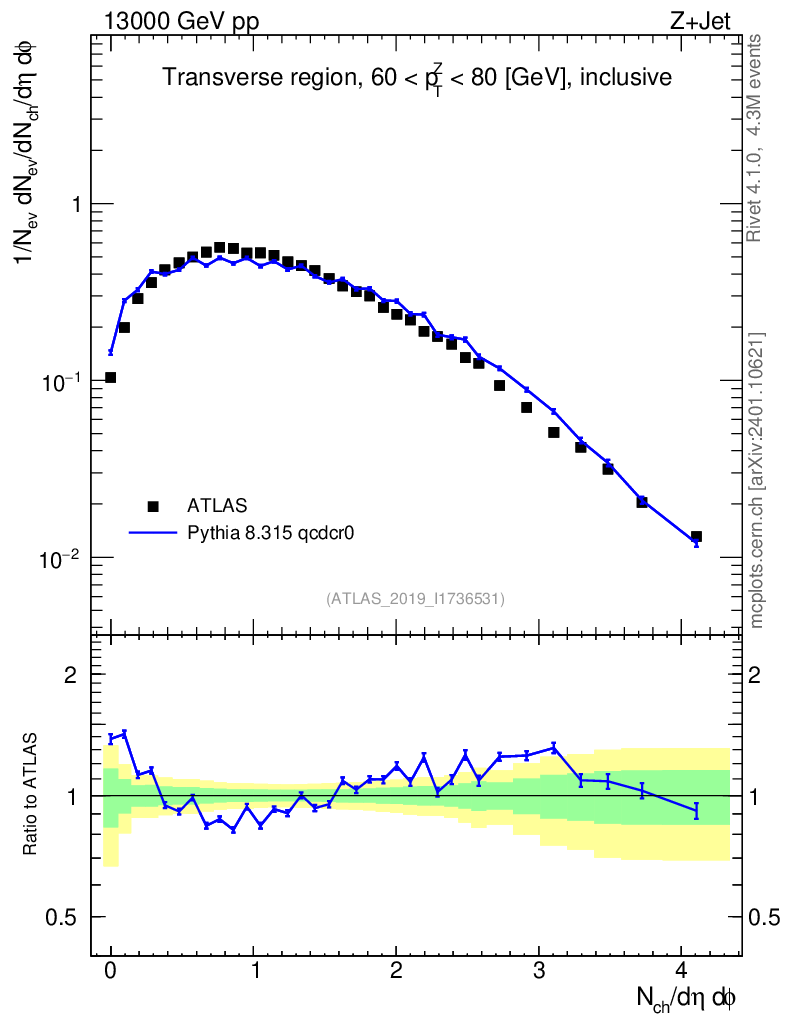 Lines: data, pythia8 8.315 qcdcr0 |