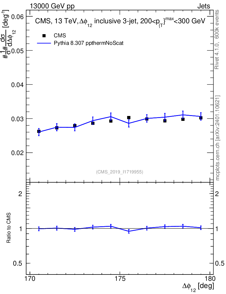 Lines: data, pythia8 8.307 ppthermNoScat |