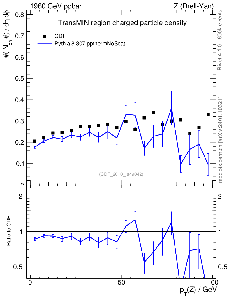 Lines: data, pythia8 8.307 ppthermNoScat |