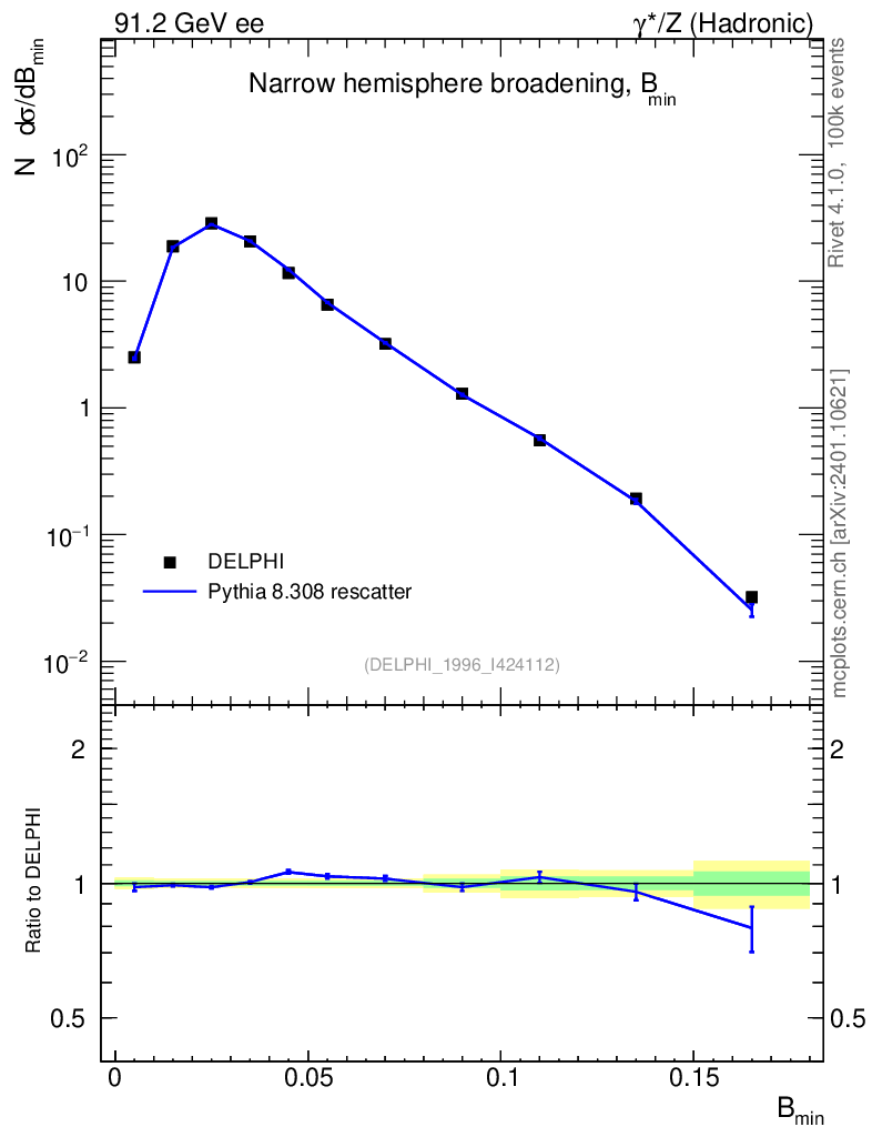 Lines: data, pythia8 8.308 rescatter |