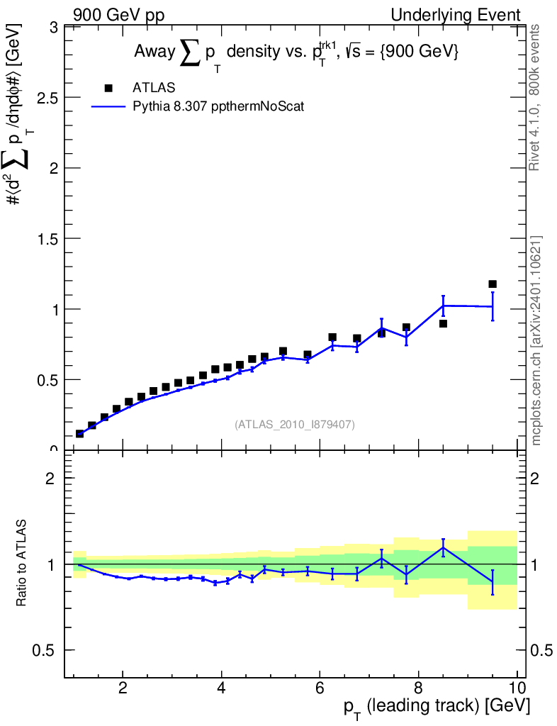 Lines: data, pythia8 8.307 ppthermNoScat |