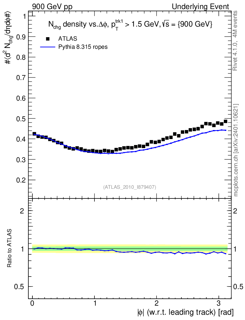Lines: data, pythia8 8.315 ropes |