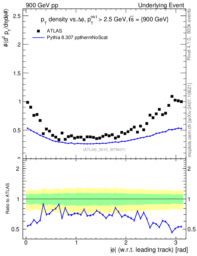Lines: data, pythia8 8.307 ppthermNoScat |