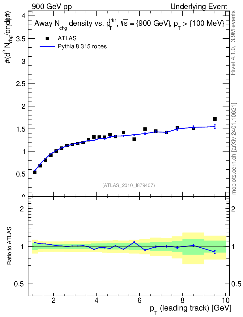 Lines: data, pythia8 8.315 ropes |