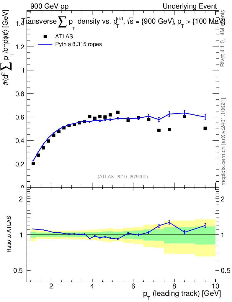 Lines: data, pythia8 8.315 ropes |