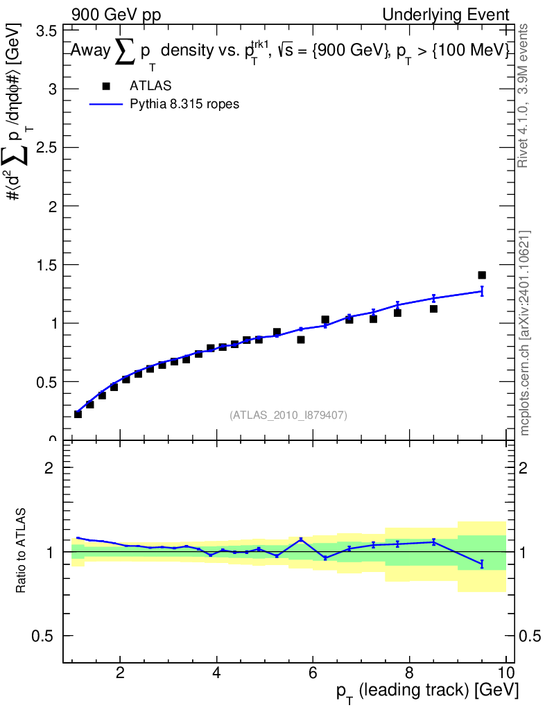 Lines: data, pythia8 8.315 ropes |
