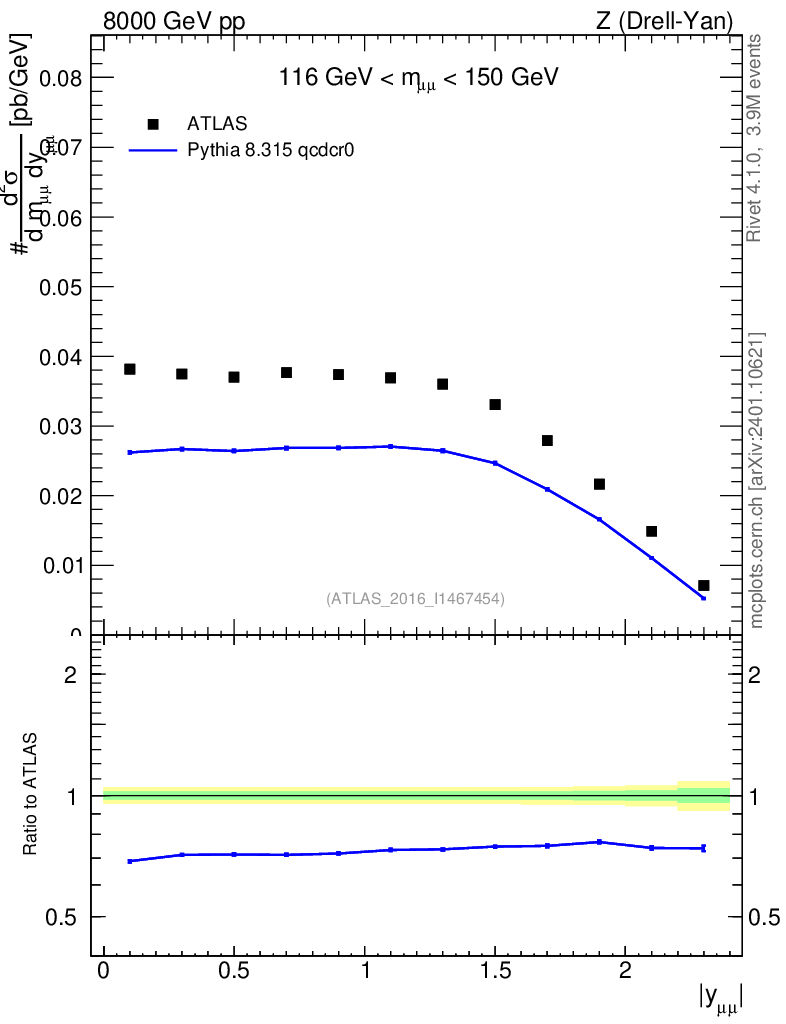 Lines: data, pythia8 8.315 qcdcr0 |