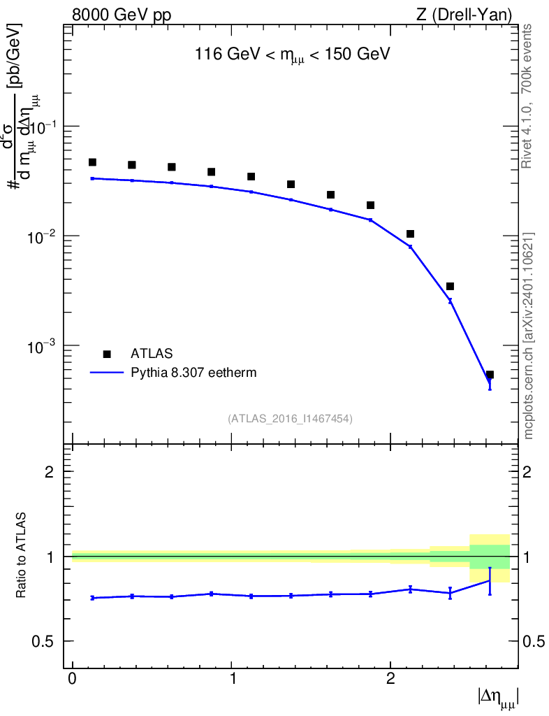 Lines: data, pythia8 8.307 eetherm |