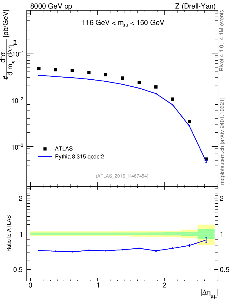Lines: data, pythia8 8.315 qcdcr2 |