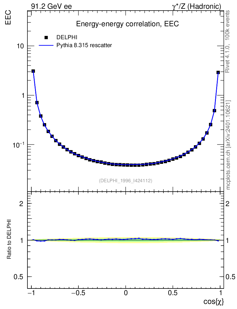 Lines: data, pythia8 8.315 rescatter |