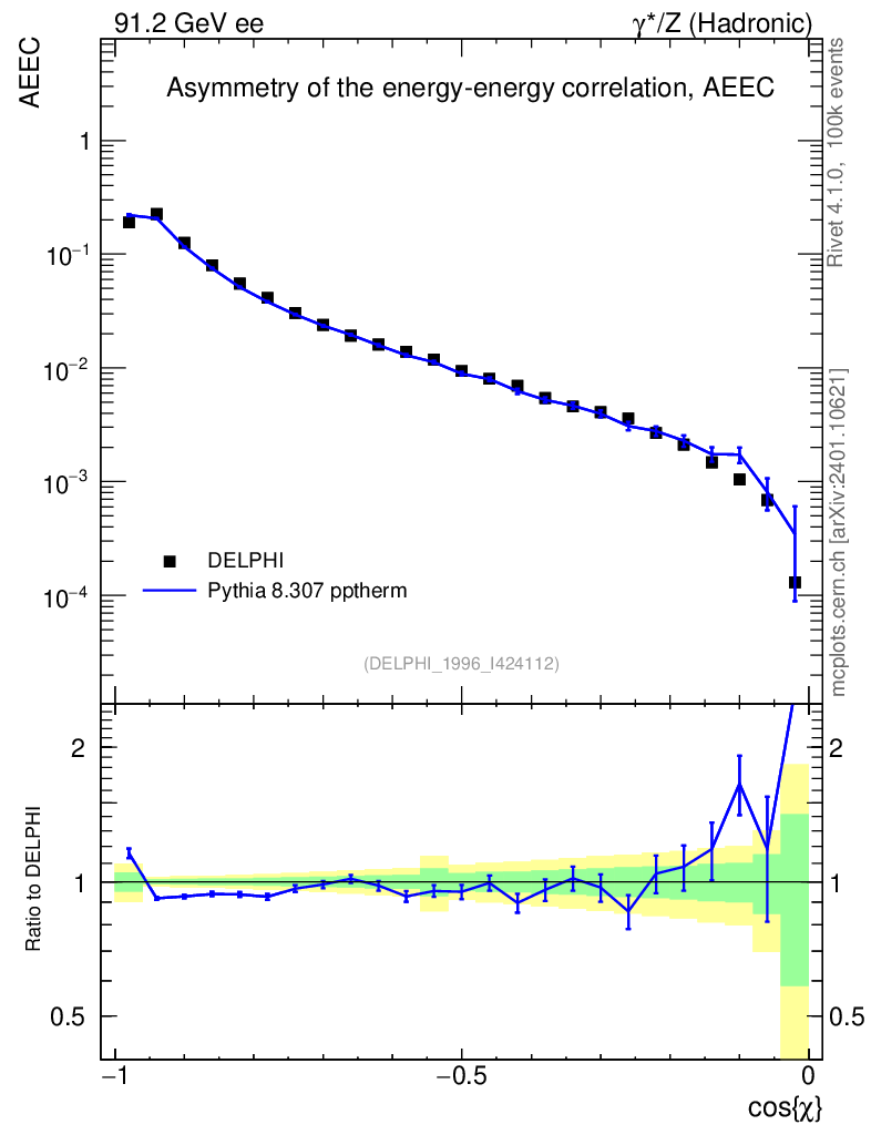 Lines: data, pythia8 8.307 pptherm |
