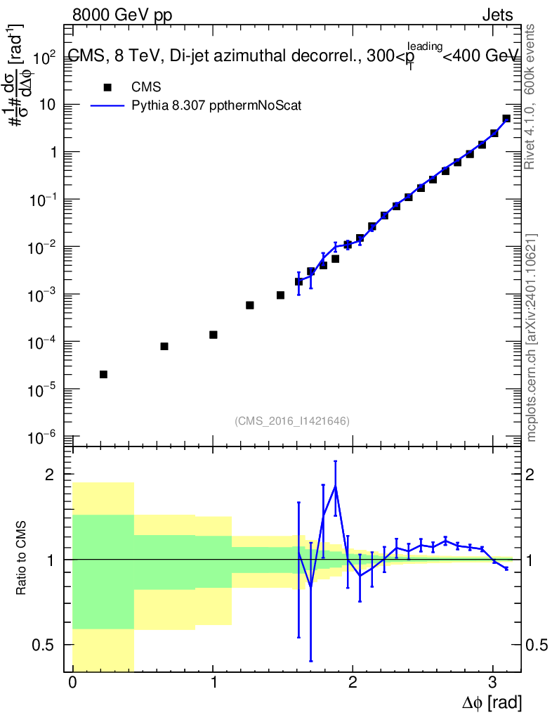 Lines: data, pythia8 8.307 ppthermNoScat |