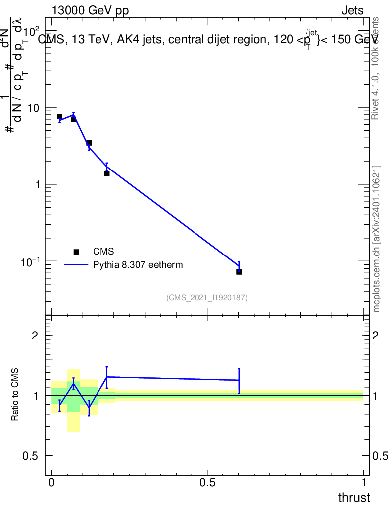 Lines: data, pythia8 8.307 eetherm |