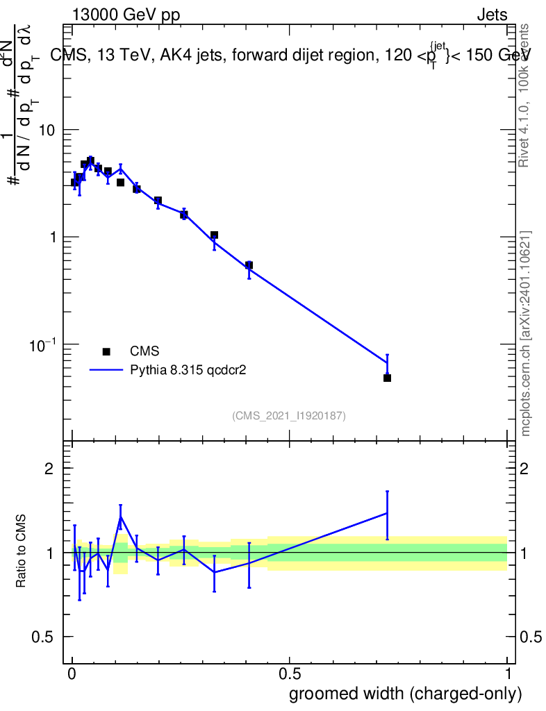 Lines: data, pythia8 8.315 qcdcr2 |
