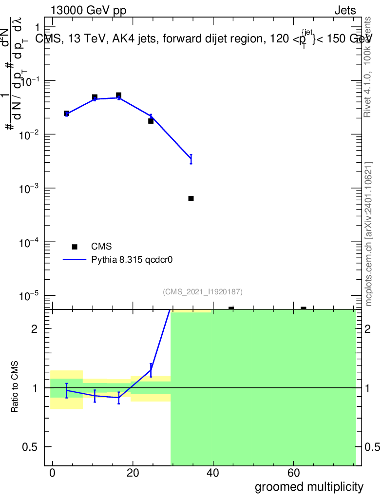 Lines: data, pythia8 8.315 qcdcr0 |