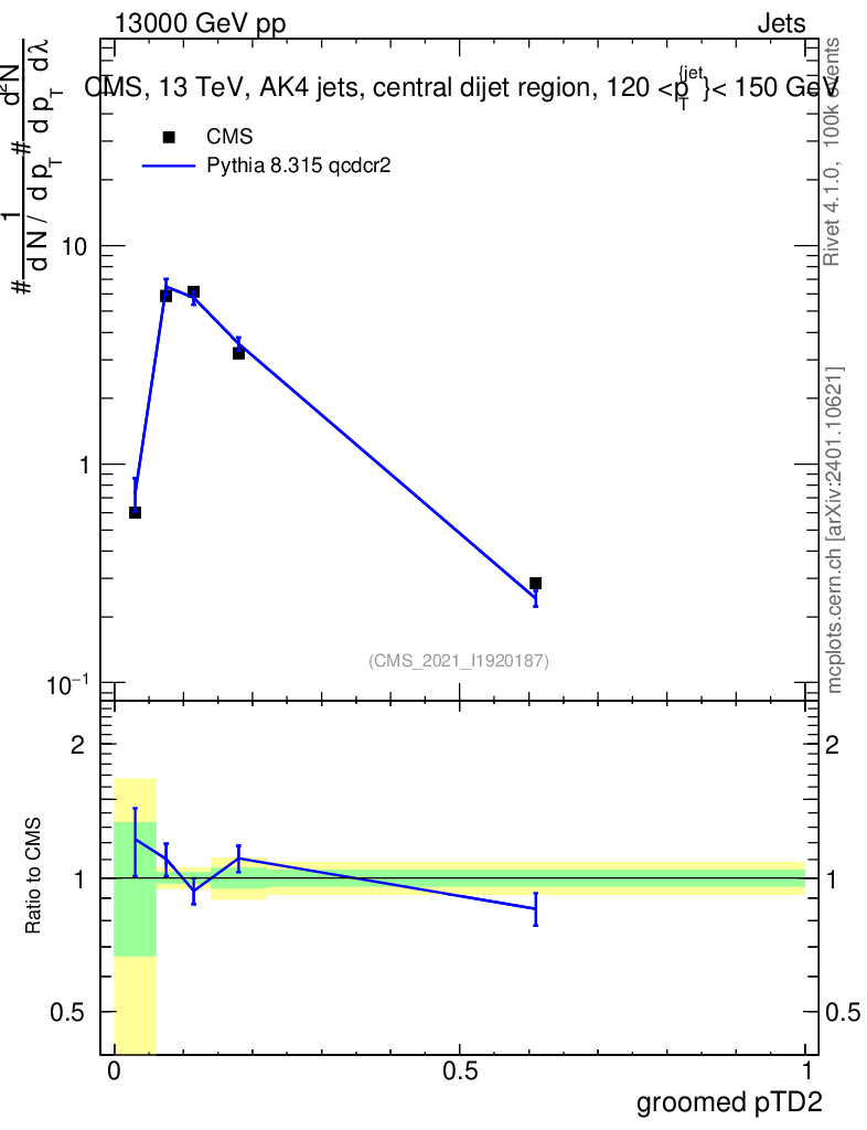 Lines: data, pythia8 8.315 qcdcr2 |