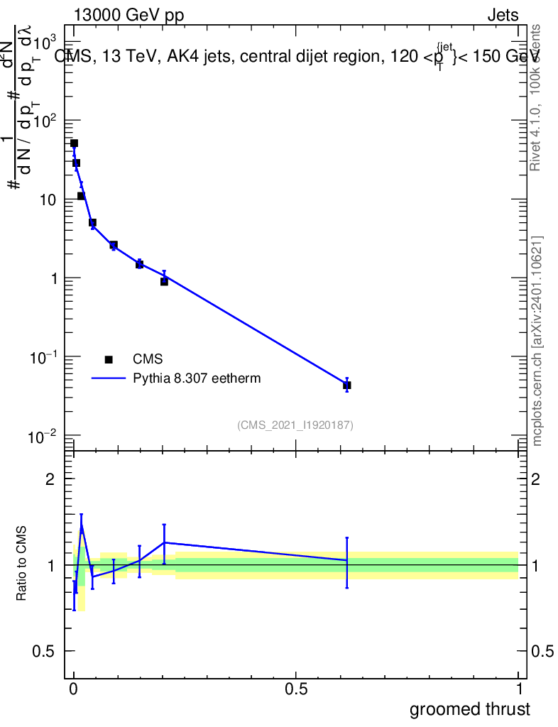 Lines: data, pythia8 8.307 eetherm |