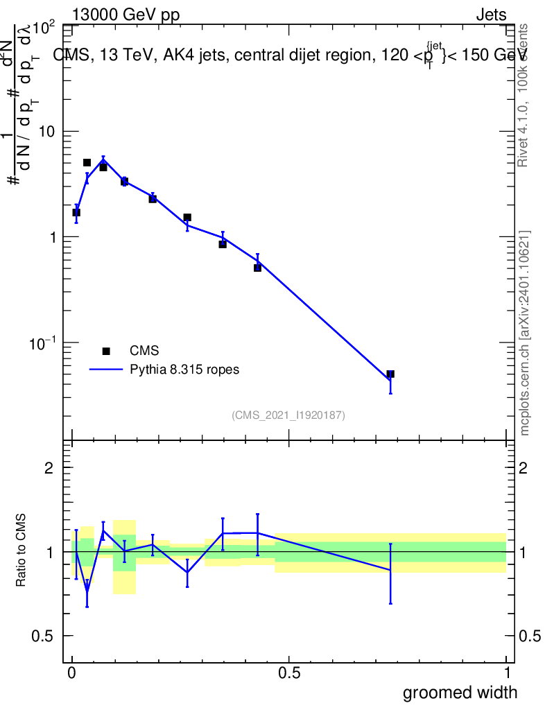 Lines: data, pythia8 8.315 ropes |
