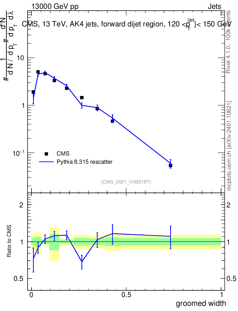 Lines: data, pythia8 8.315 rescatter |