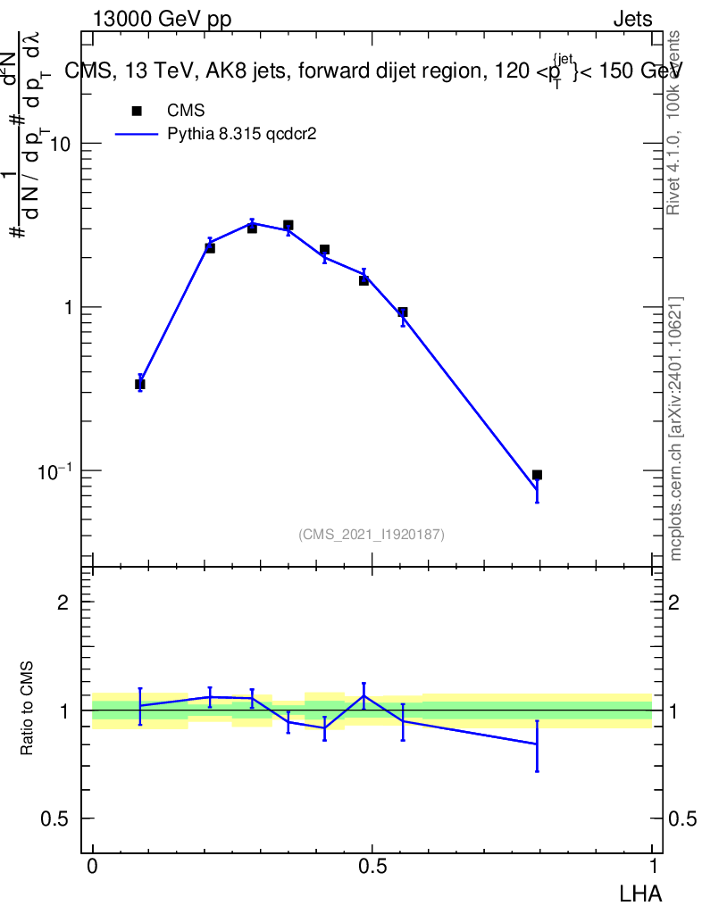 Lines: data, pythia8 8.315 qcdcr2 |