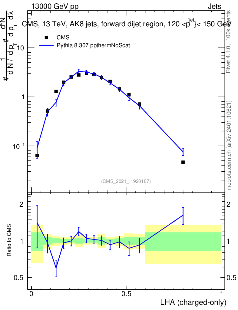 Lines: data, pythia8 8.307 ppthermNoScat |