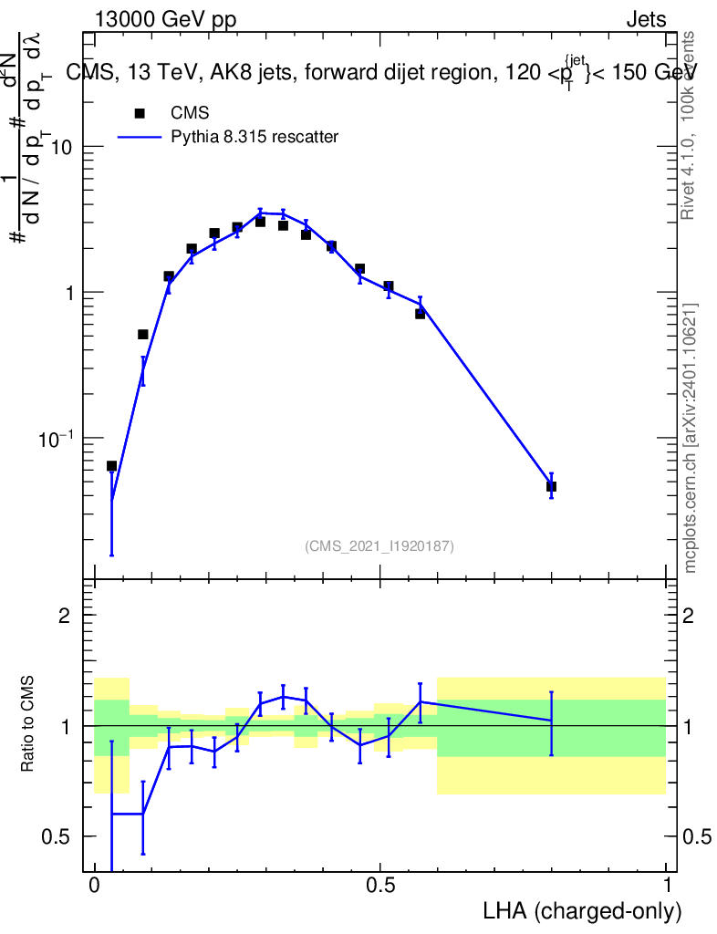 Lines: data, pythia8 8.315 rescatter |