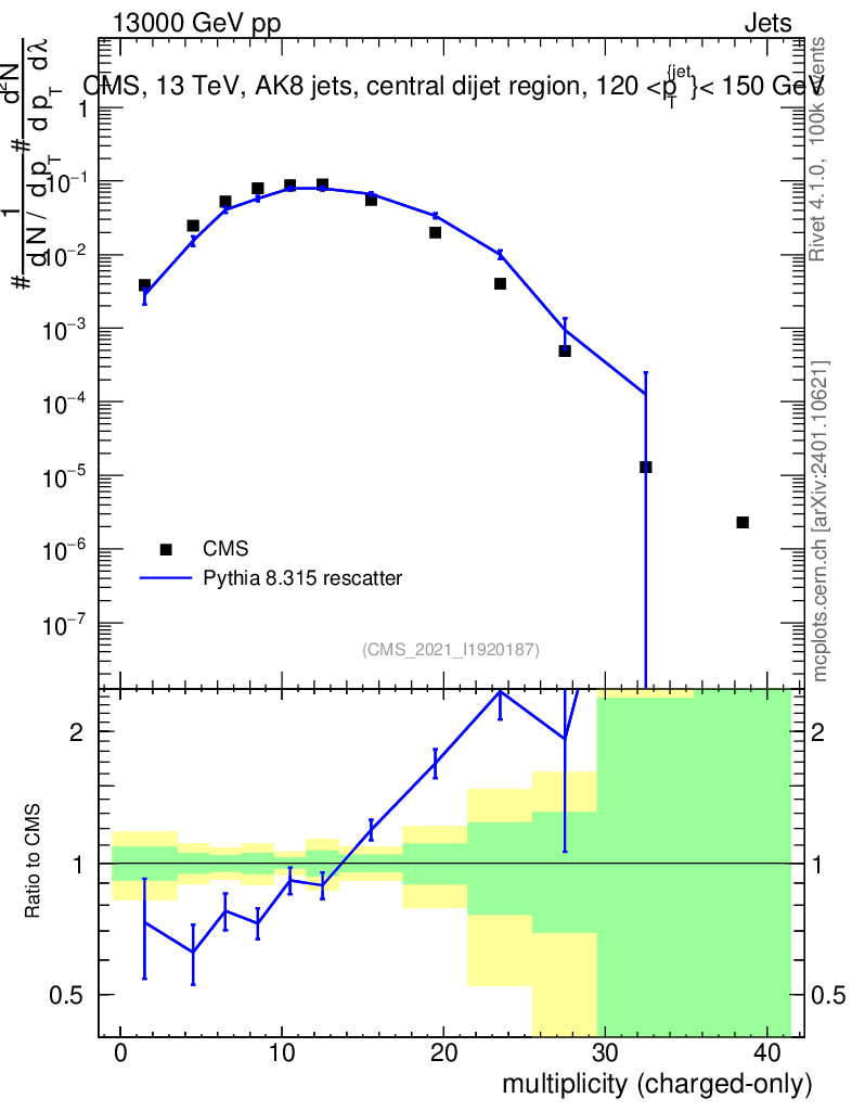Lines: data, pythia8 8.315 rescatter |