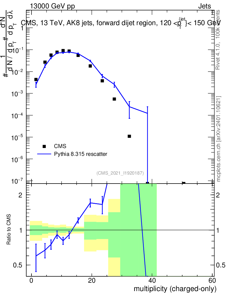 Lines: data, pythia8 8.315 rescatter |