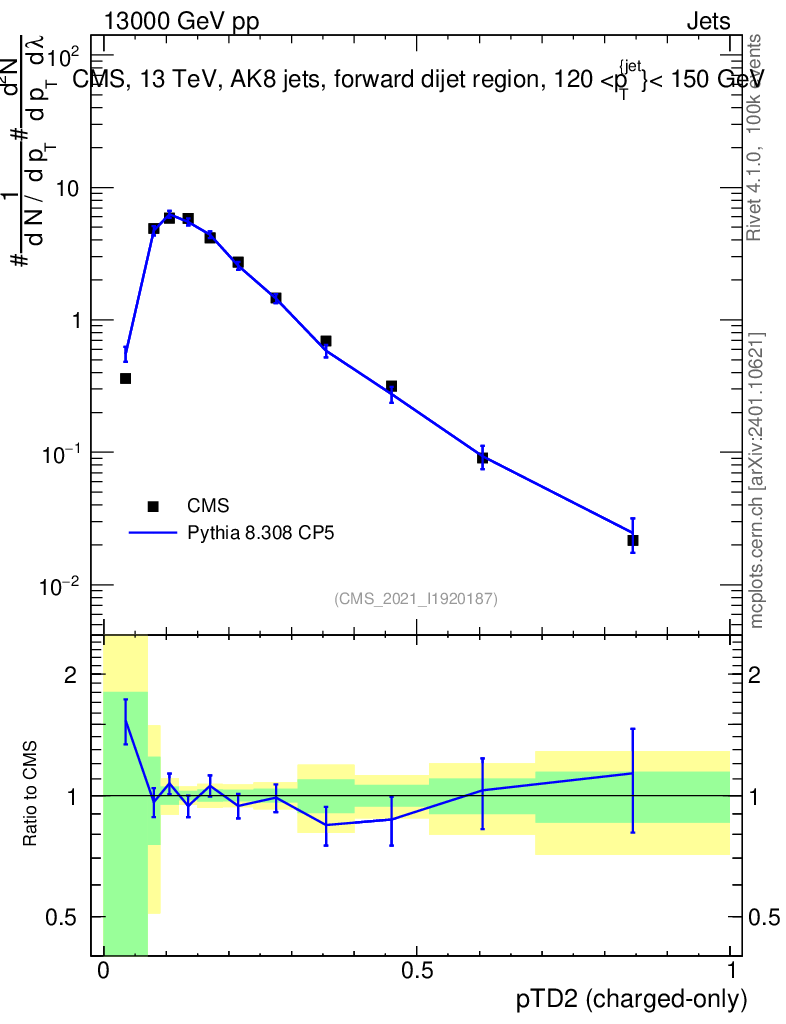 Lines: data, pythia8 8.308 CP5 |