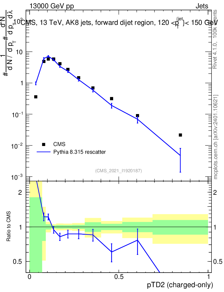 Lines: data, pythia8 8.315 rescatter |