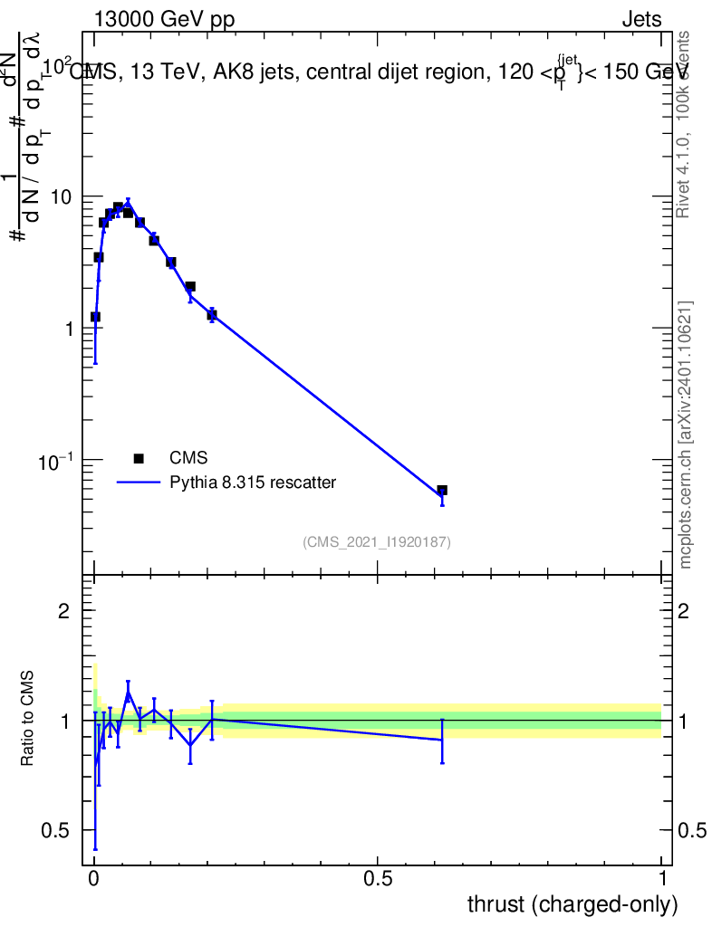 Lines: data, pythia8 8.315 rescatter |